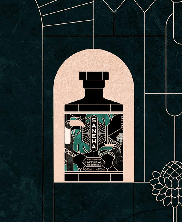 For Saneha, a premium gin brand, the bottle becomes a canvas, a crafted artifact where illustration, geometry and material give body to the substance. Rooted in an elegant, art-driven universe, the project transforms the flacon into a statement piece, blurring the line between packaging and collectible design. A visual identity shapes with the artist Samy Halim conceived to be as expressive as the spirit it contains.